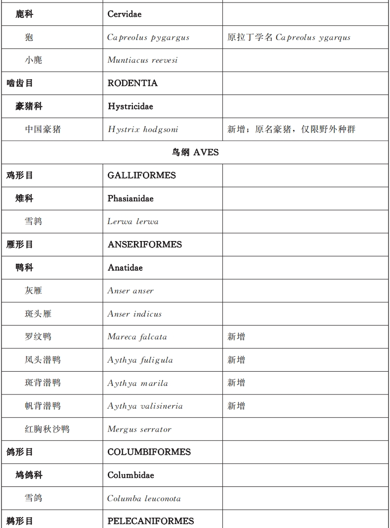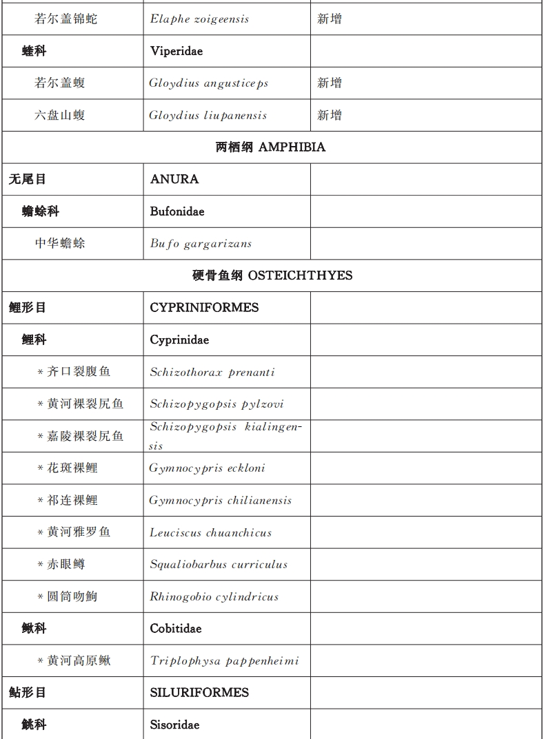 甘肃省重点保护野生动物名录
