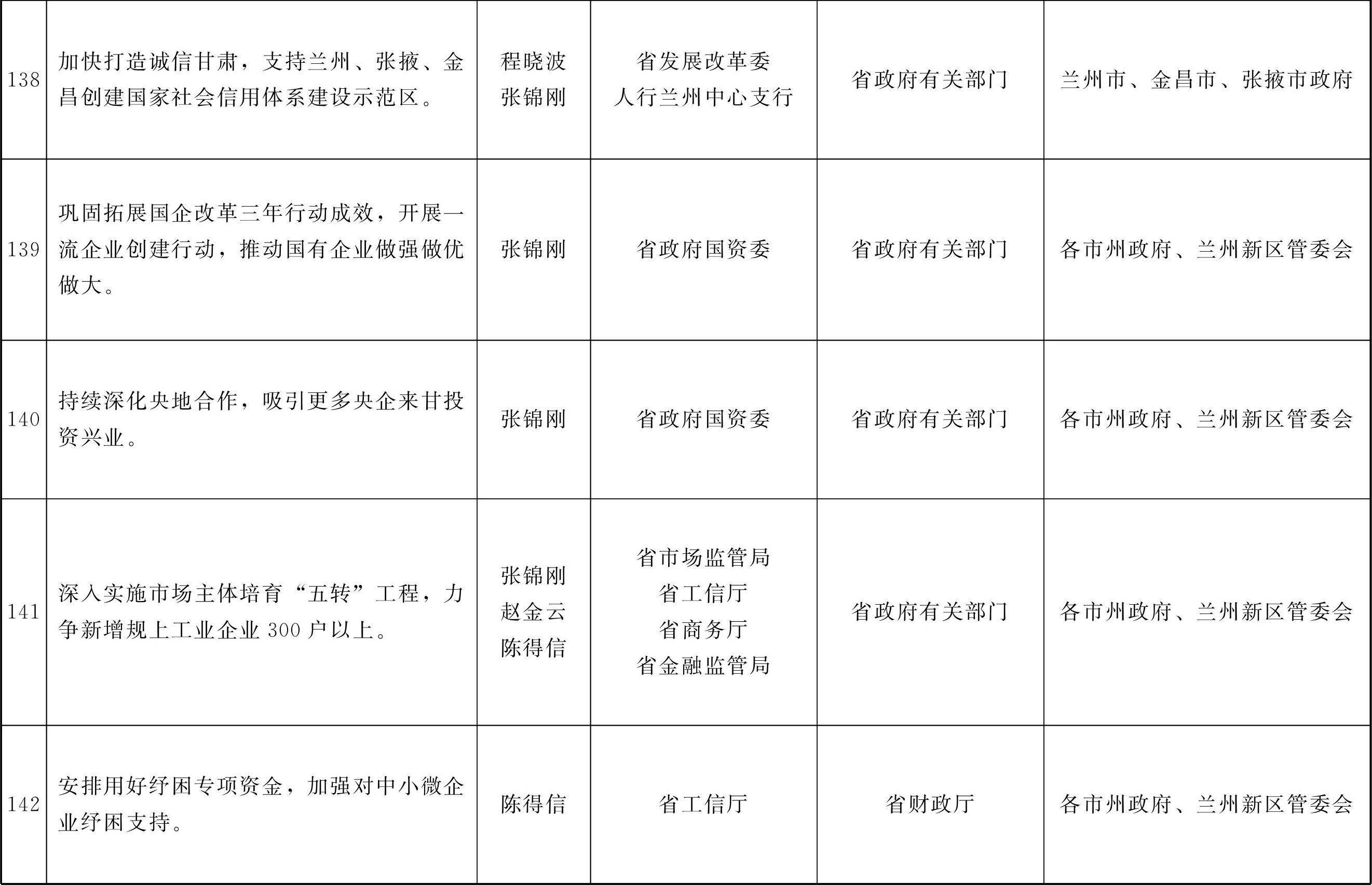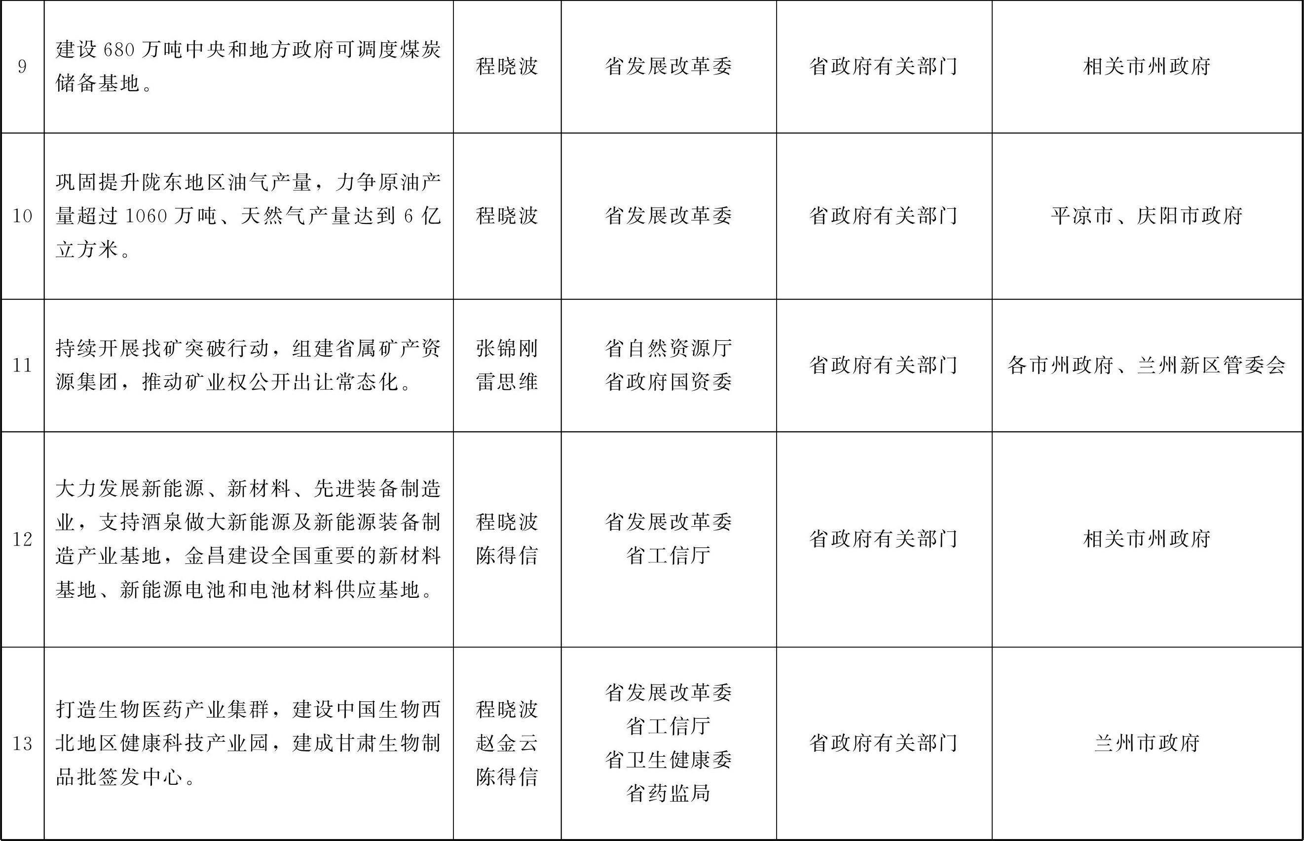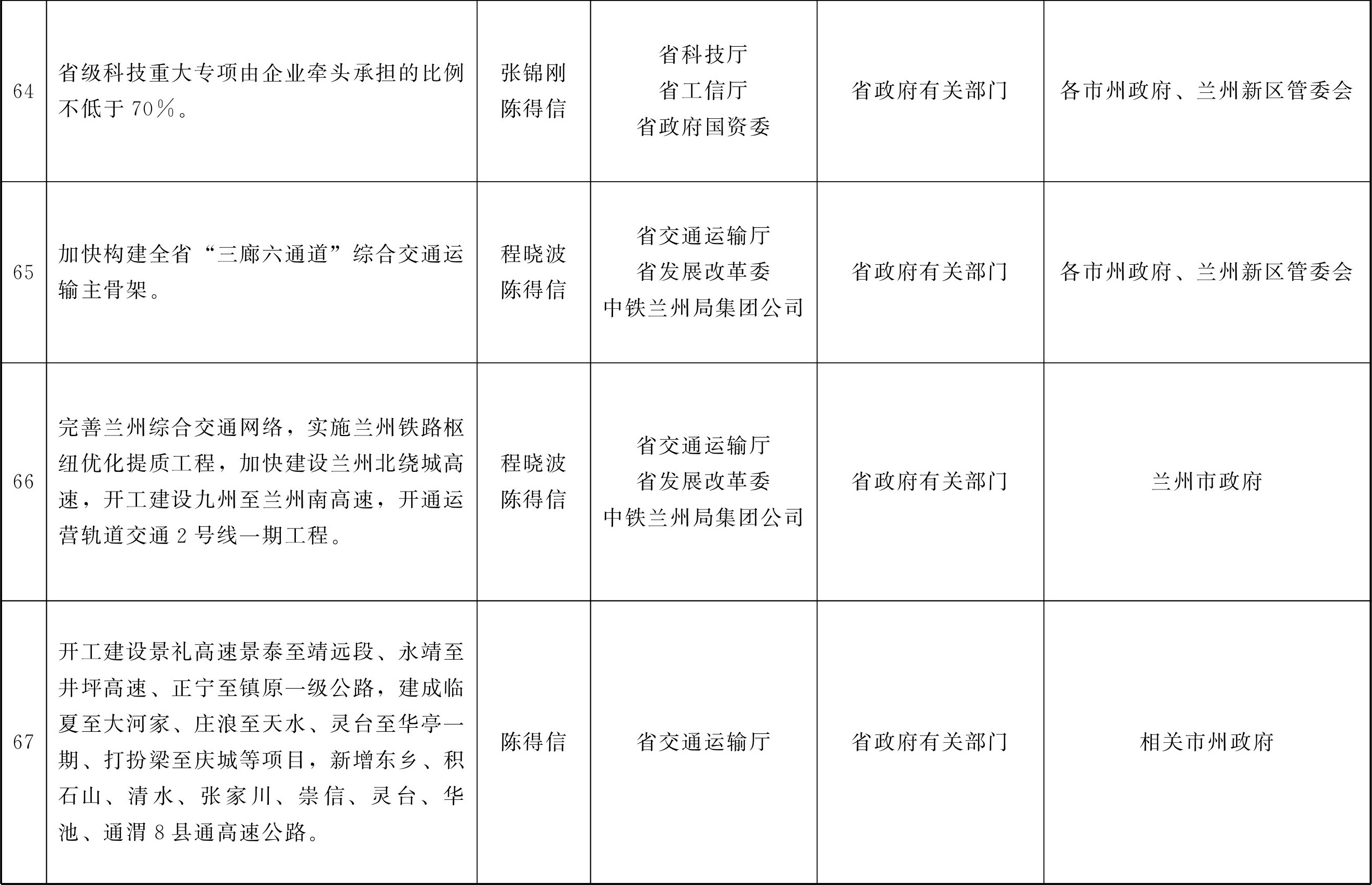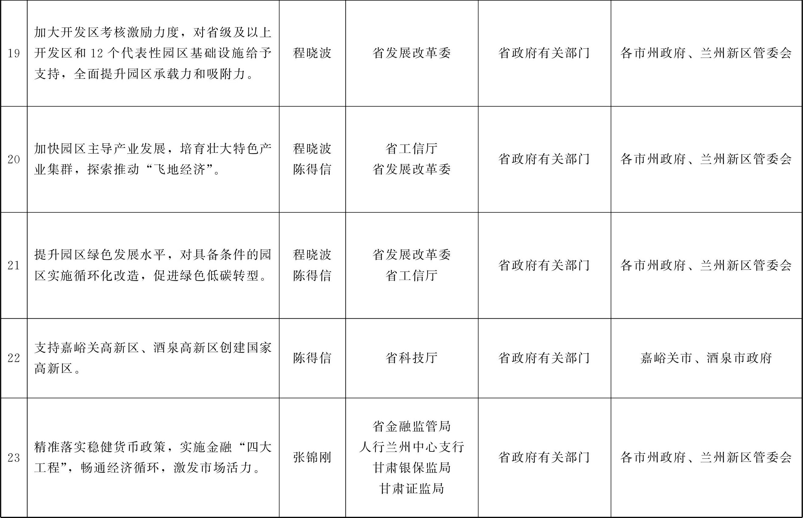 各市、自治州人民政府,甘肃矿区办事处,兰州新区管委会,省政府各部门,中央在甘各单位: