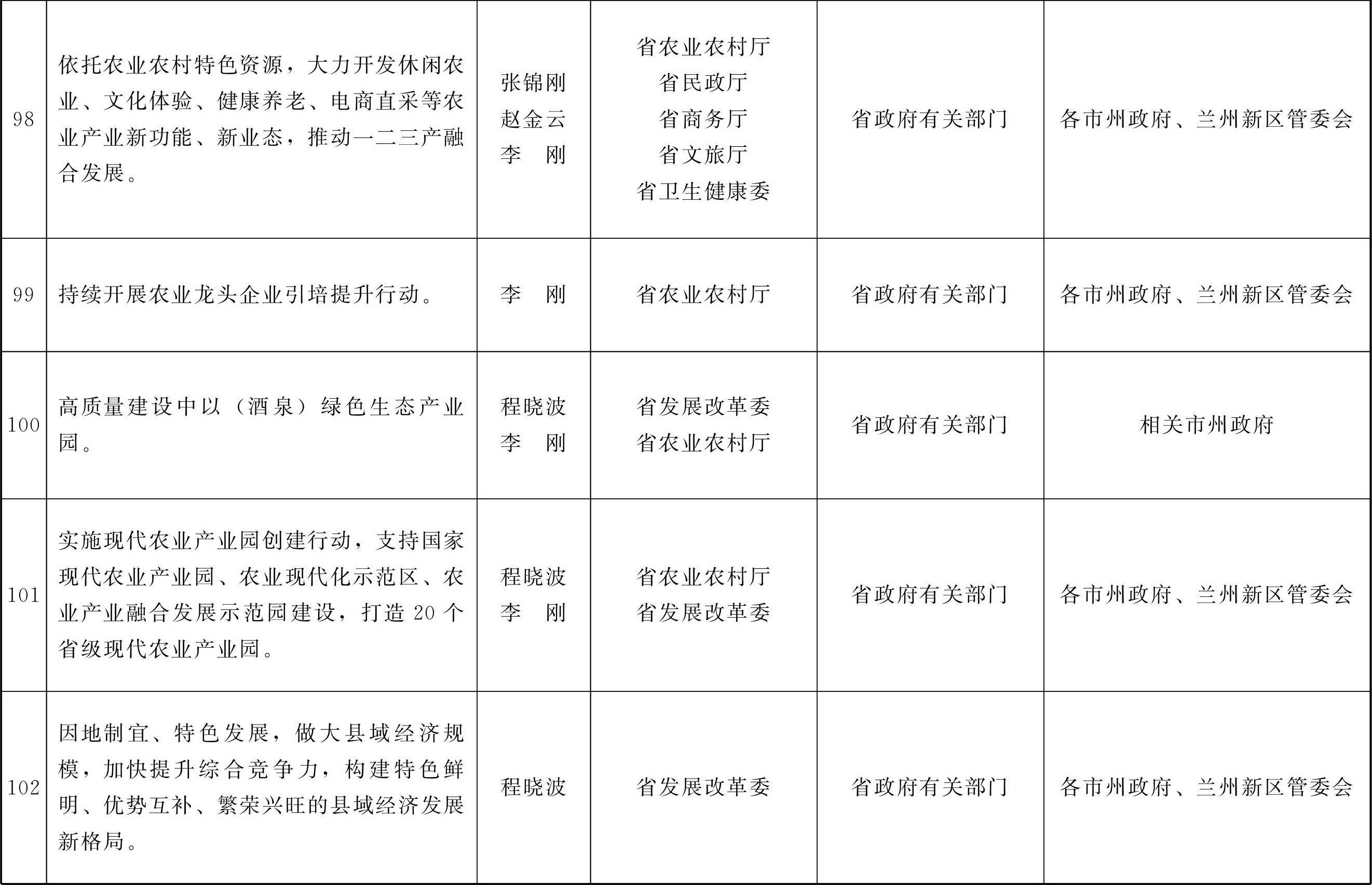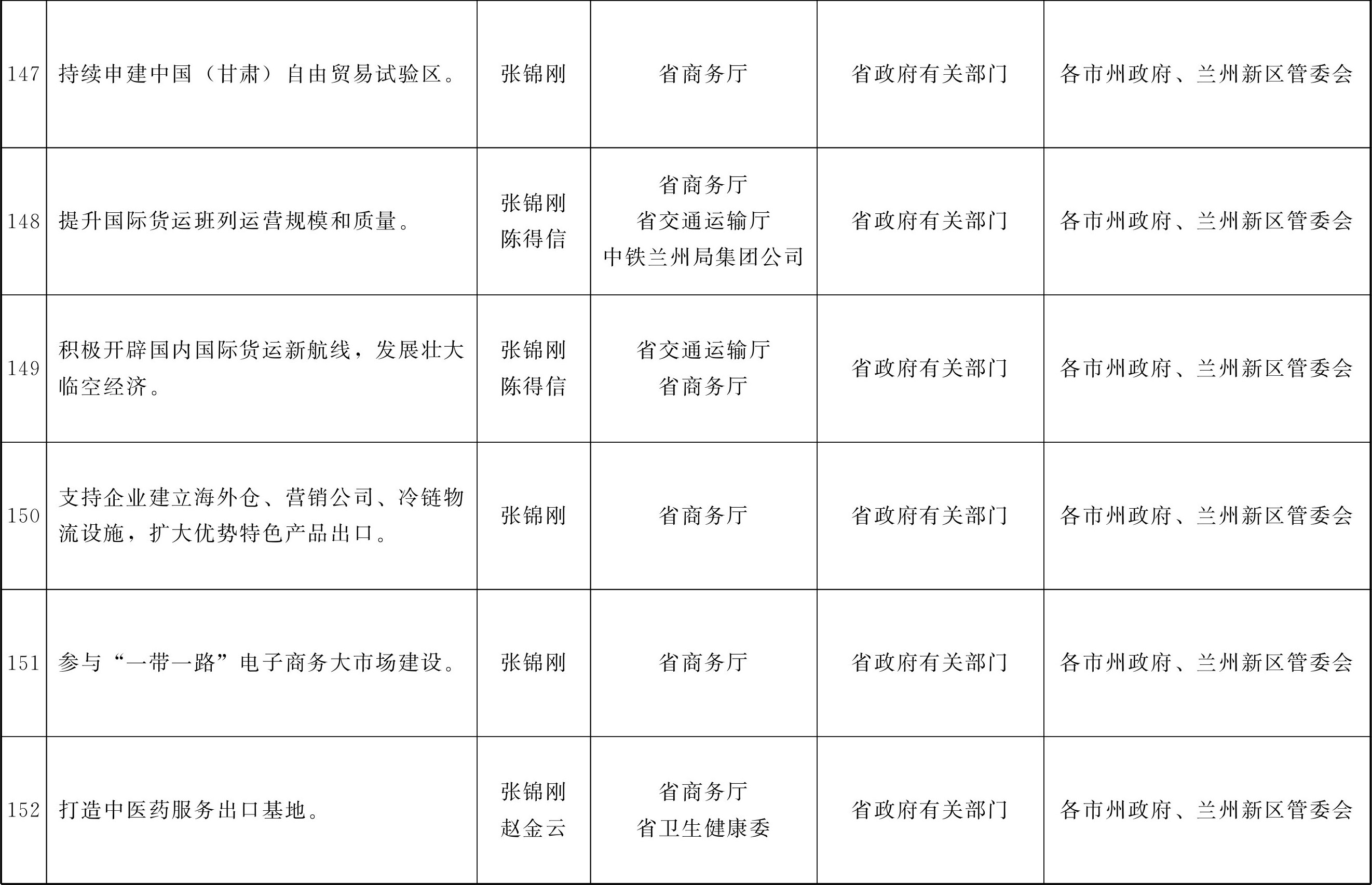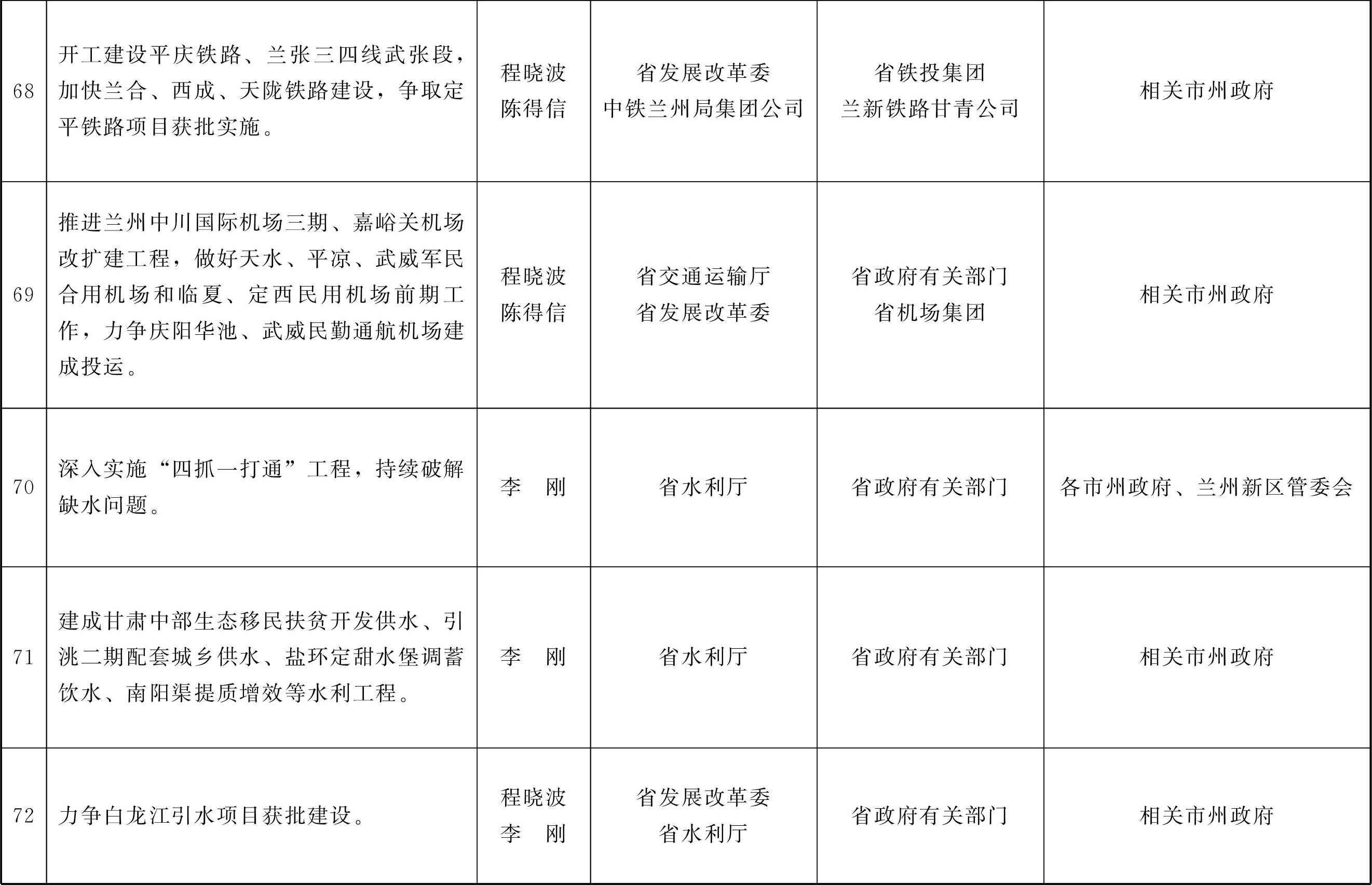 各市、自治州人民政府,甘肃矿区办事处,兰州新区管委会,省政府各部门,中央在甘各单位: