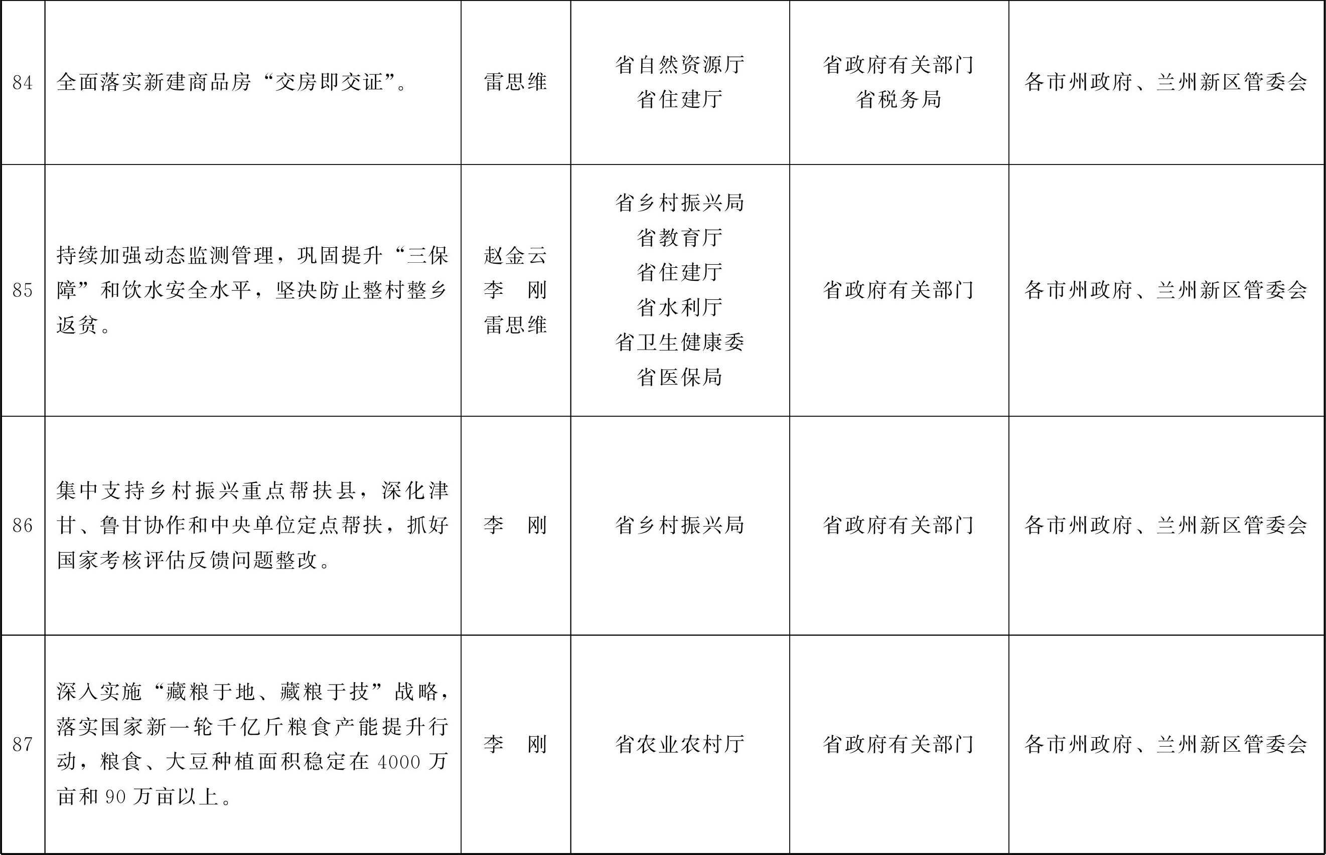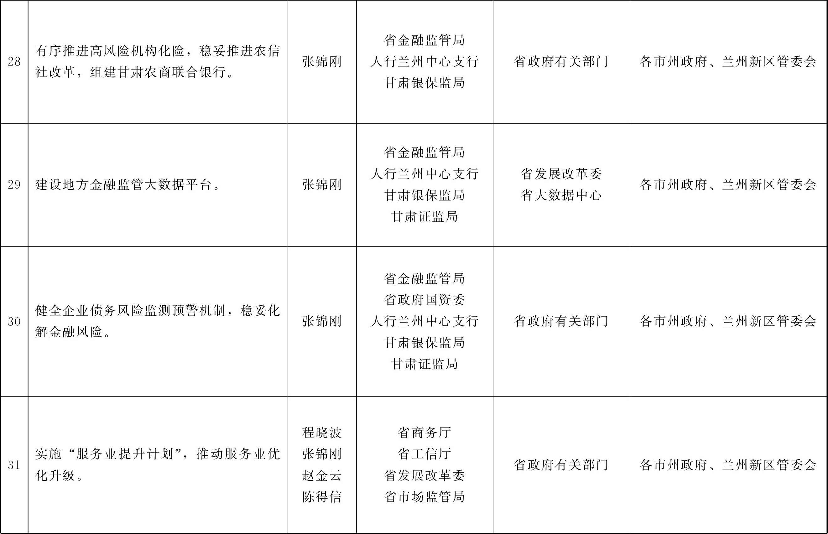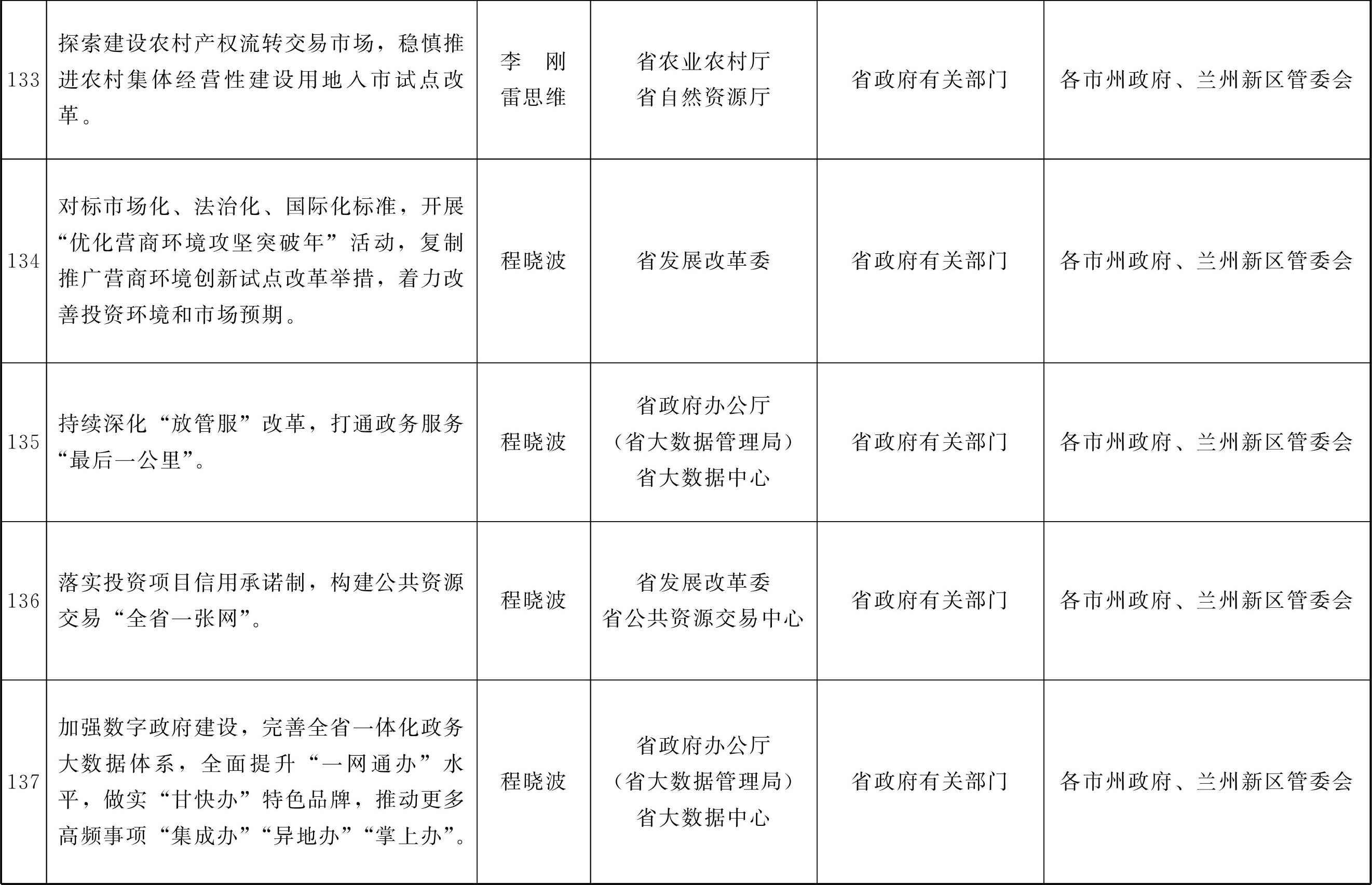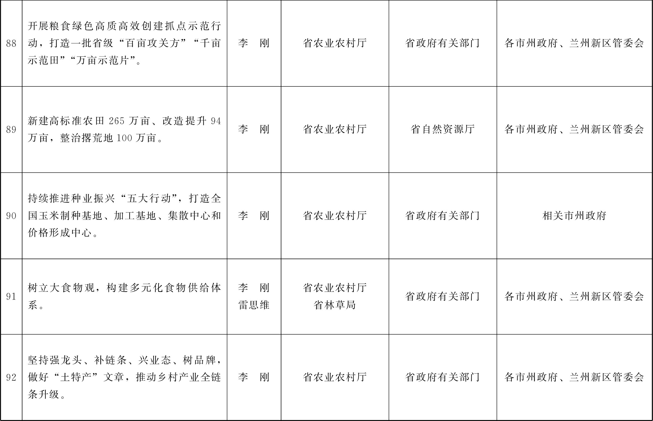 各市、自治州人民政府,甘肃矿区办事处,兰州新区管委会,省政府各部门,中央在甘各单位: