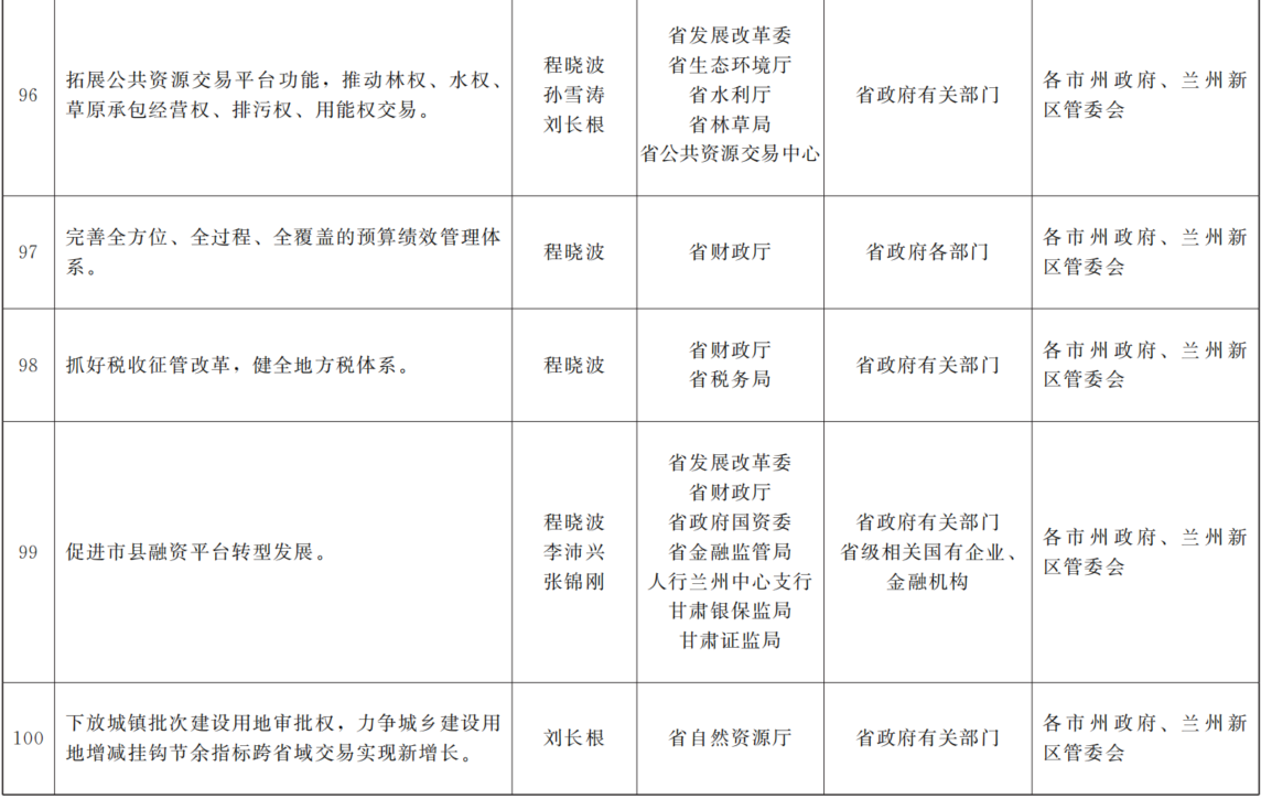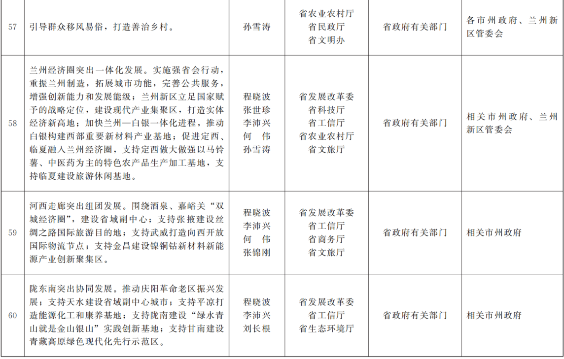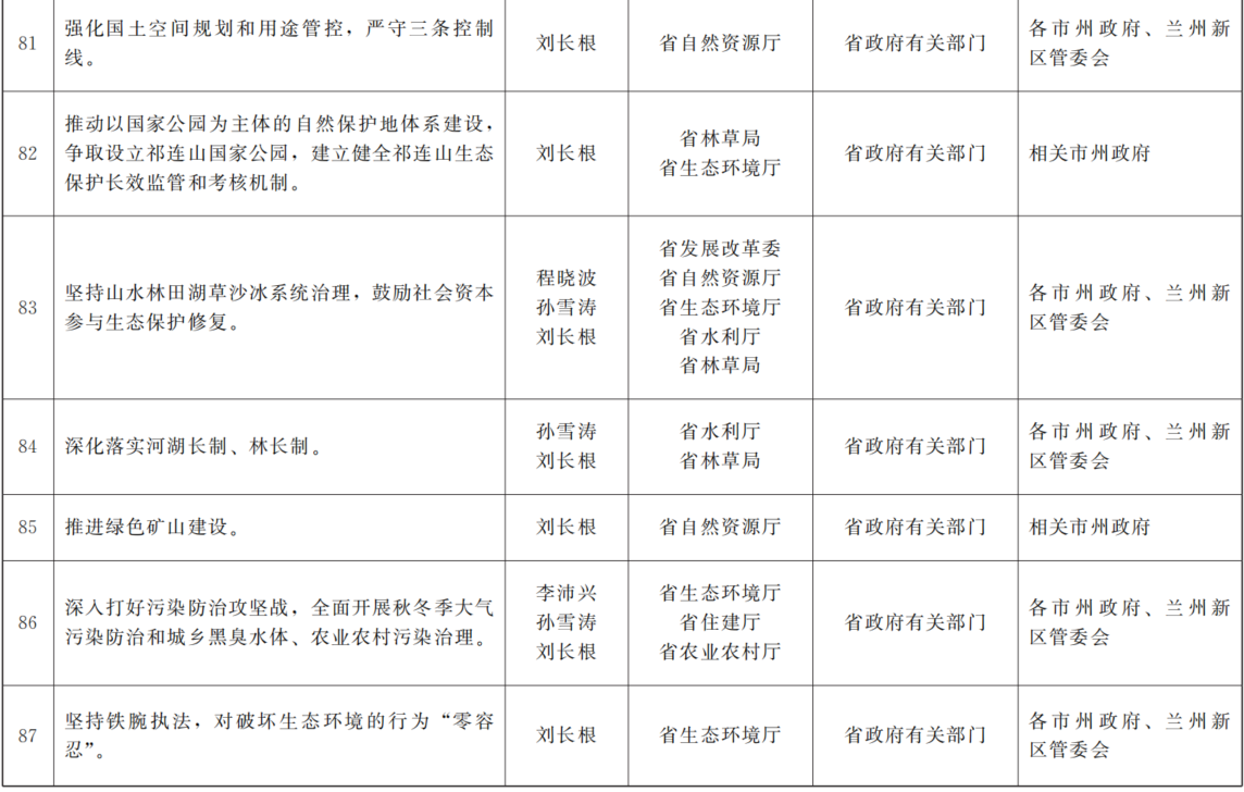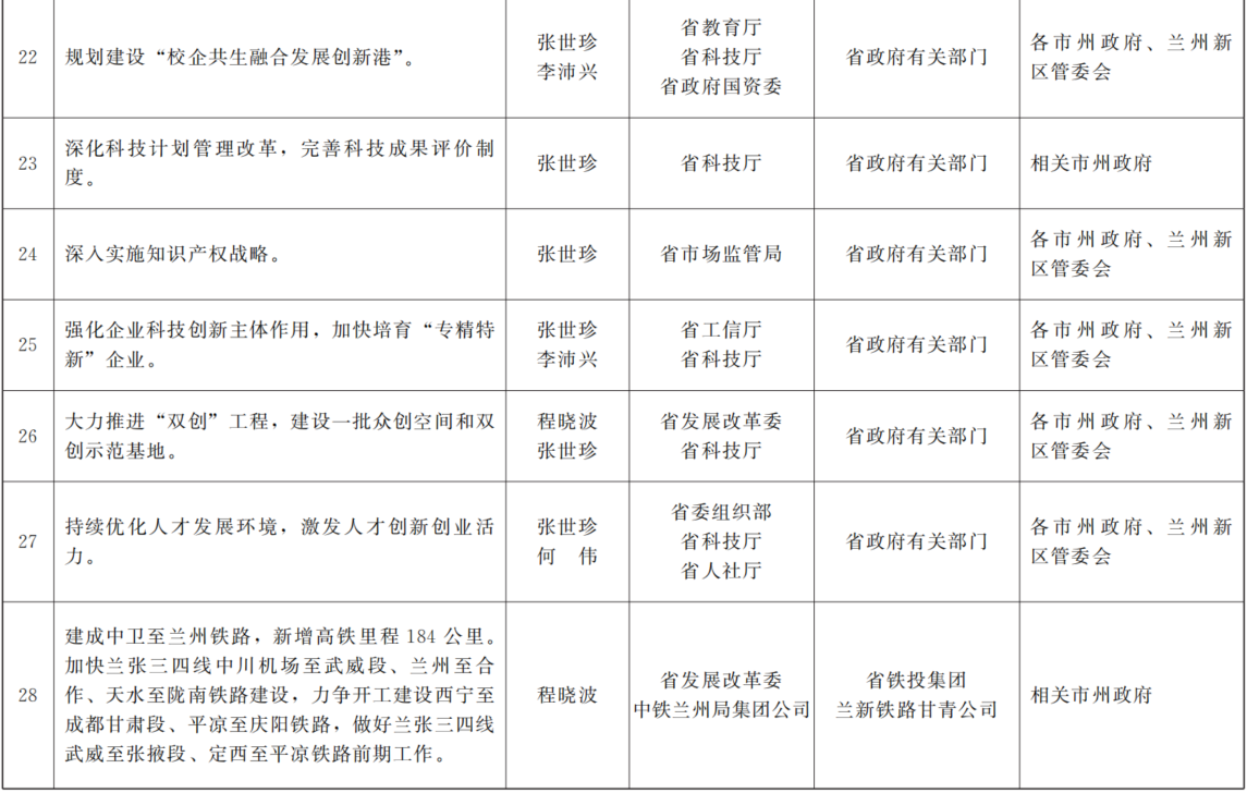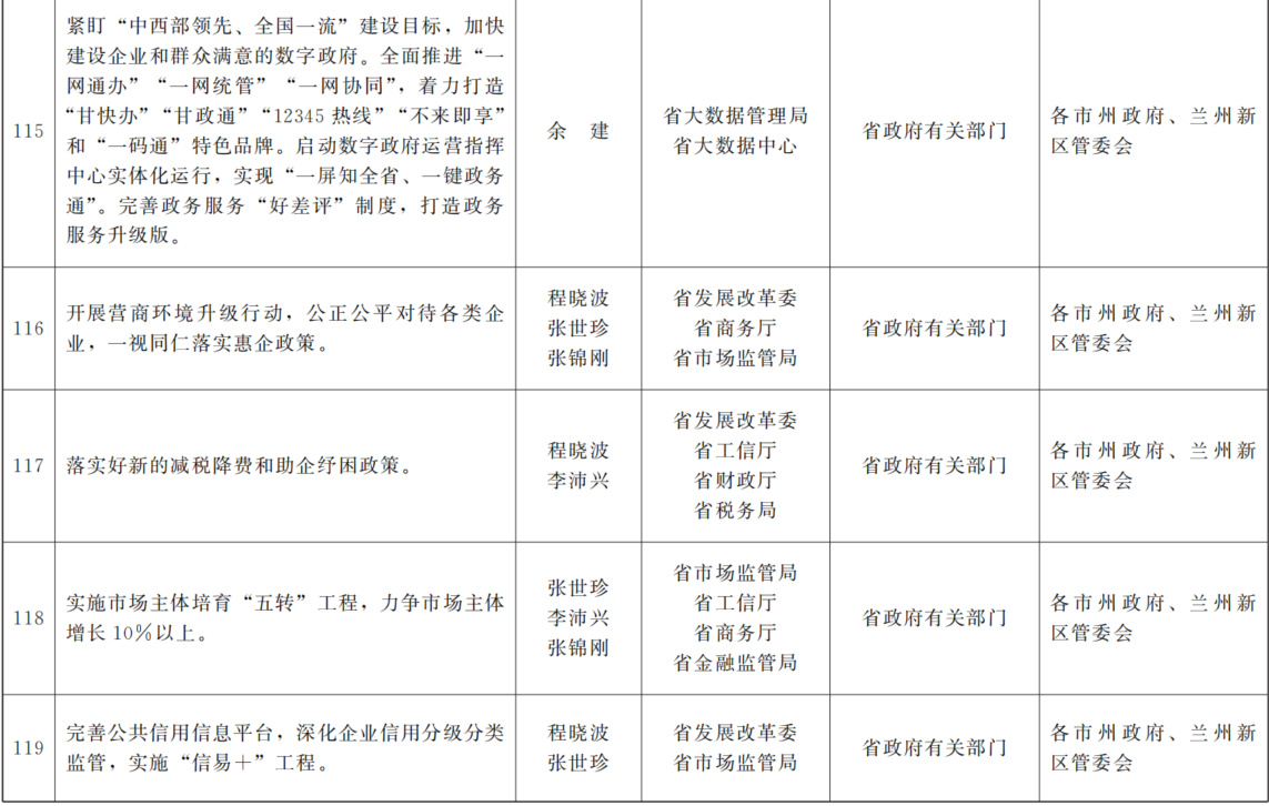 各市、自治州人民政府,兰州新区管委会,省政府各部门,中央在甘各单位: