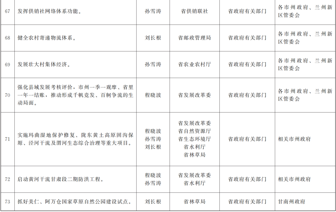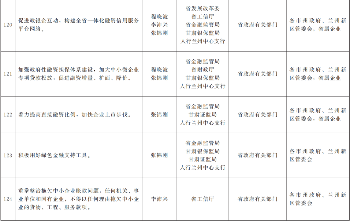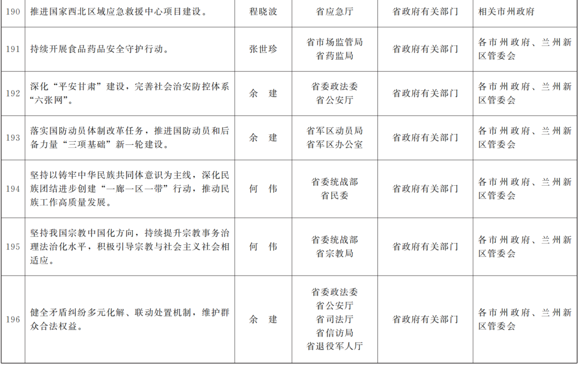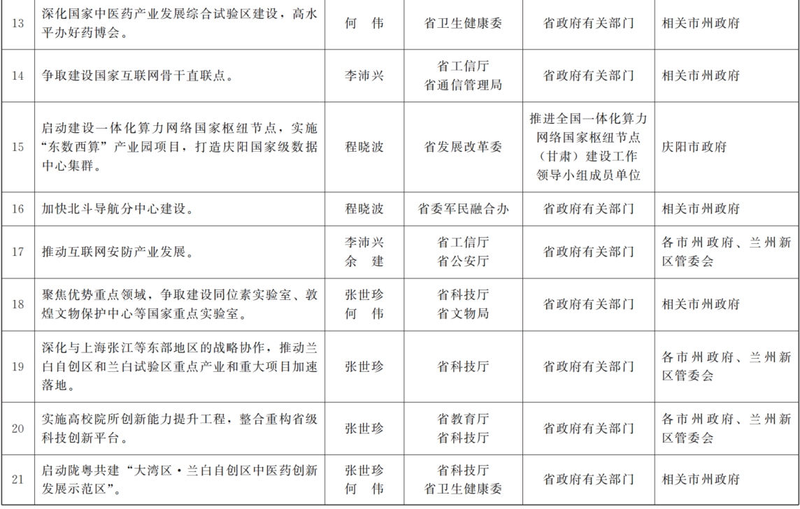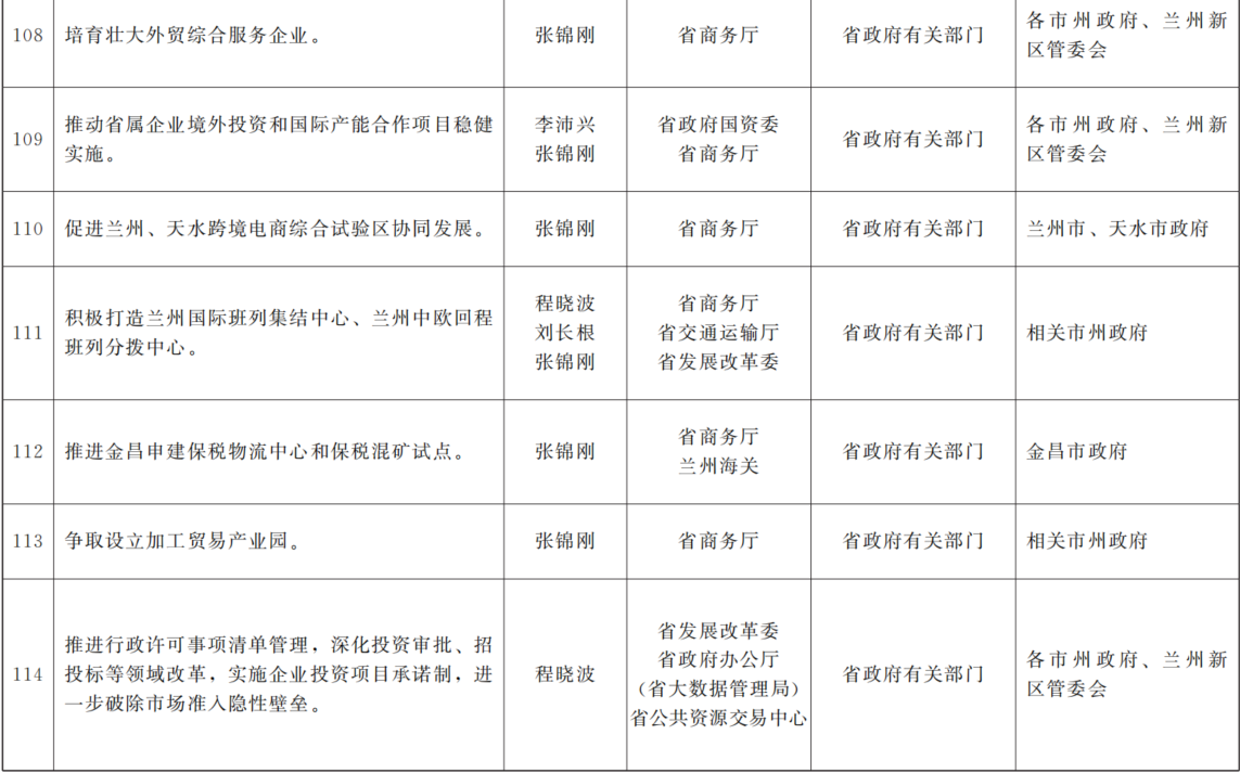 各市、自治州人民政府,兰州新区管委会,省政府各部门,中央在甘各单位: