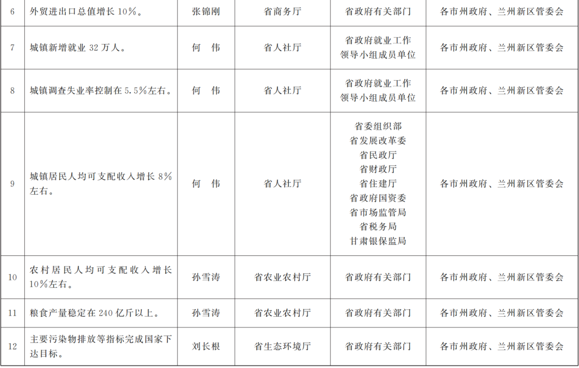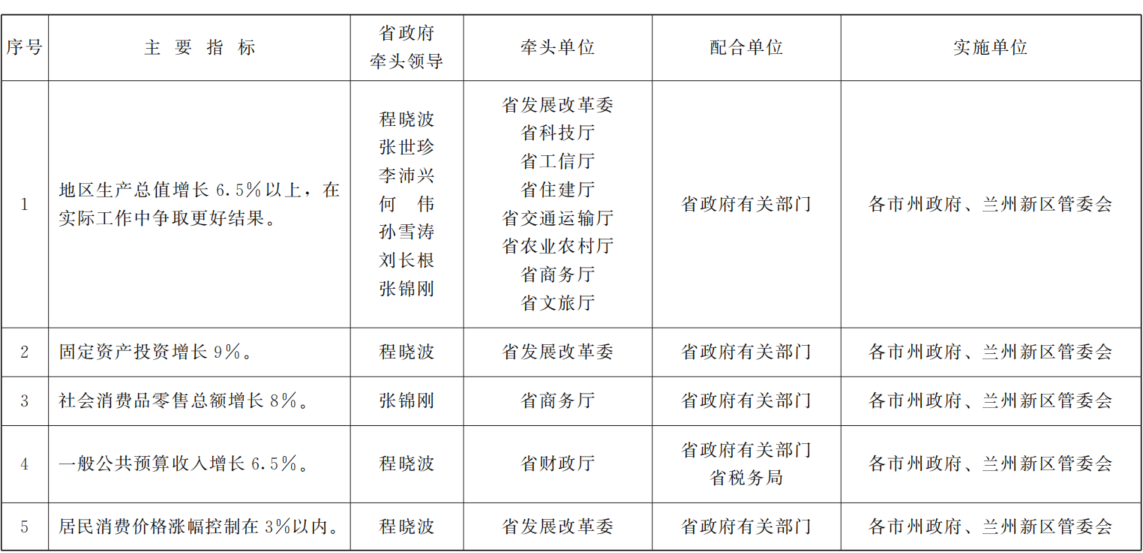 甘肃省人民政府关于分解落实《政府工作报告》主要指标和重点任务的通知.PDF
